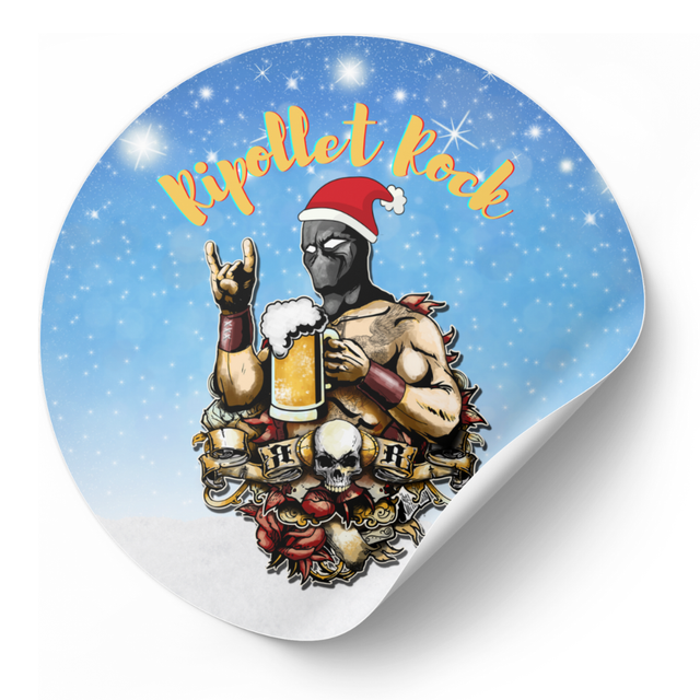 Decora tus regalos, instrumentos o cualquier rincón con las pegatinas navideñas oficiales del Ripollet Rock. Dos diseños disponibles: